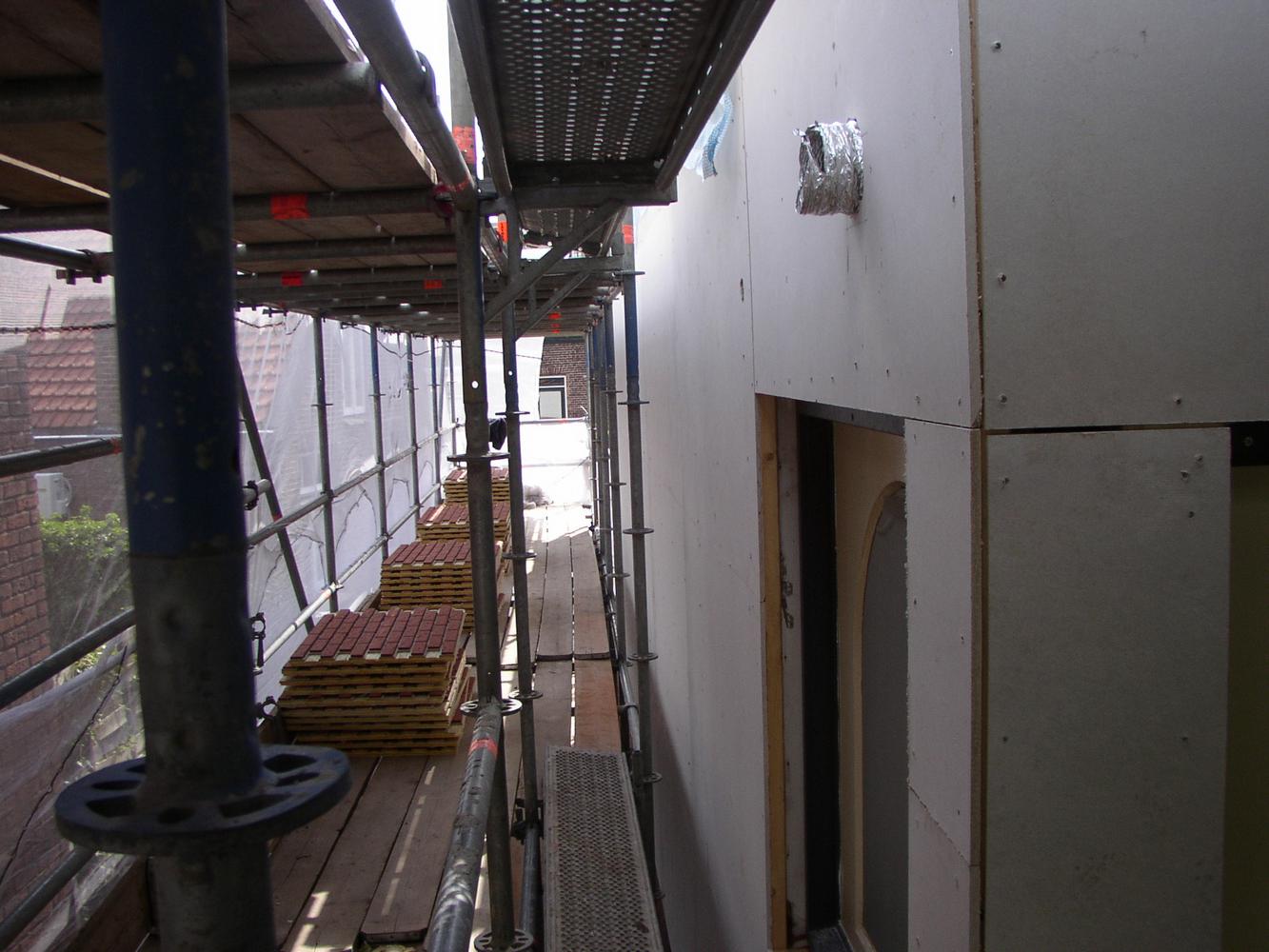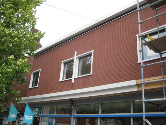 Die Fensteröffnungen wurden mit einem widerstandfähigen Hartholz eingebunden, nur für die Hausecken gab es ergänzend zu den Klinkerpaneelen komplette Eckelemente für die Einfassung. “Der größte Vorteil lag in der relativ kurzen Bauzeit gegenüber den konventionellen Einzel-Klebesystemen. Die werkseitig vorgefertigten Systemklinkerelemente brauchten nur noch auf ein Maß zugeschnitten und an die Wand geschraubt werden” meinte Vertriebsleiter Wim Beekhuis von der Firma Kooy. “Im weiteren Verlauf wurden Systemkomponenten wie echte Winkelriemchenformteile für die Gebäudeecken eingesetzt. So brauchte man in diesen Bereichen keine Kompromisse eingehen.” Nach Fertigstellung der Montage wurde das gesamte Fugennetz mit fertigem Werkmörtel verfugt. Die dunkle Verfugung der Klinkerfassade sorgt gleichzeitig für eine ausgewogene Flächigkeit und verdeckt dauerhaft die Verschraubung im System.